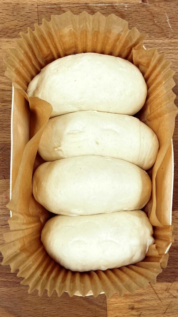 Mutschli, so heißen knusprige Semmel aus hellem Weizenmehl in der Schweiz. Unser Mutschlibrot sind gleich 4 Stück davon. Aneinander in der Holzform gebacken, haben sie eine knusprige Kruste, sind jedoch im inneren fein soft und fluffig! Zum Toasten hervorragend geeignet.